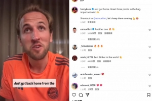 上演帽子戏法!凯恩社媒庆祝:精彩三分入袋,一场重要的胜利